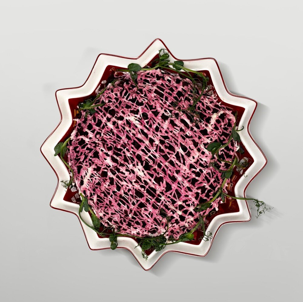 Филе сельди с\с, лук репчатый, картофель отварной, морковь отварная, свекла отварная, яйцо куриное отварное, майонез