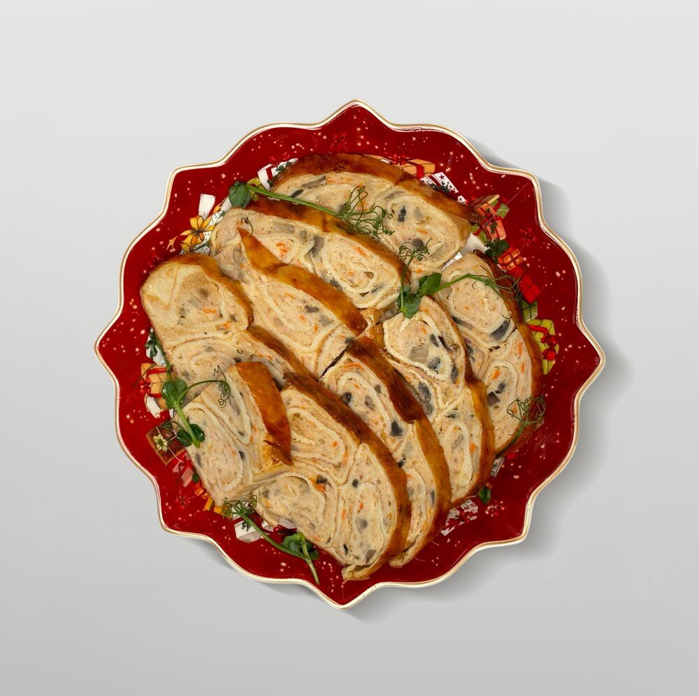 Тушка цыпленка бройлера, морковь пассерованная, лук пассерованный, желатин, молоко 3,2%, яйцо куриное пищевое, мука пшеничная в/с, масло растительное,перец черный молотый, соль, сахар, сода пищевая