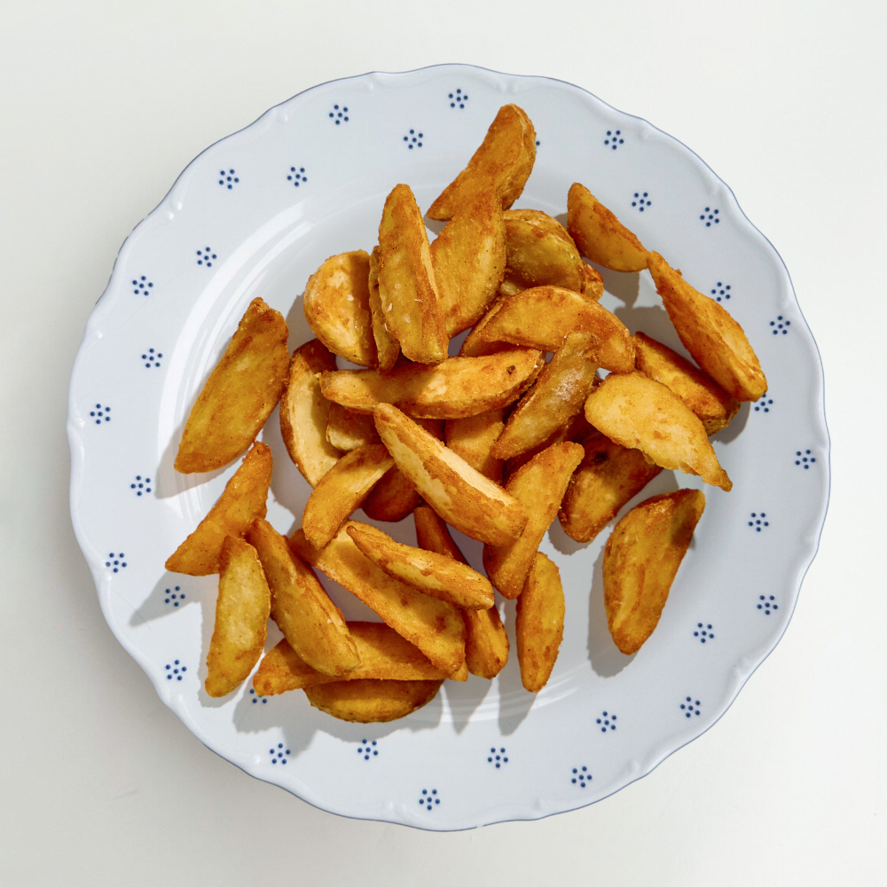 Картофель запеченный, паприка сладкая, черный перец, соль, масло растительное.